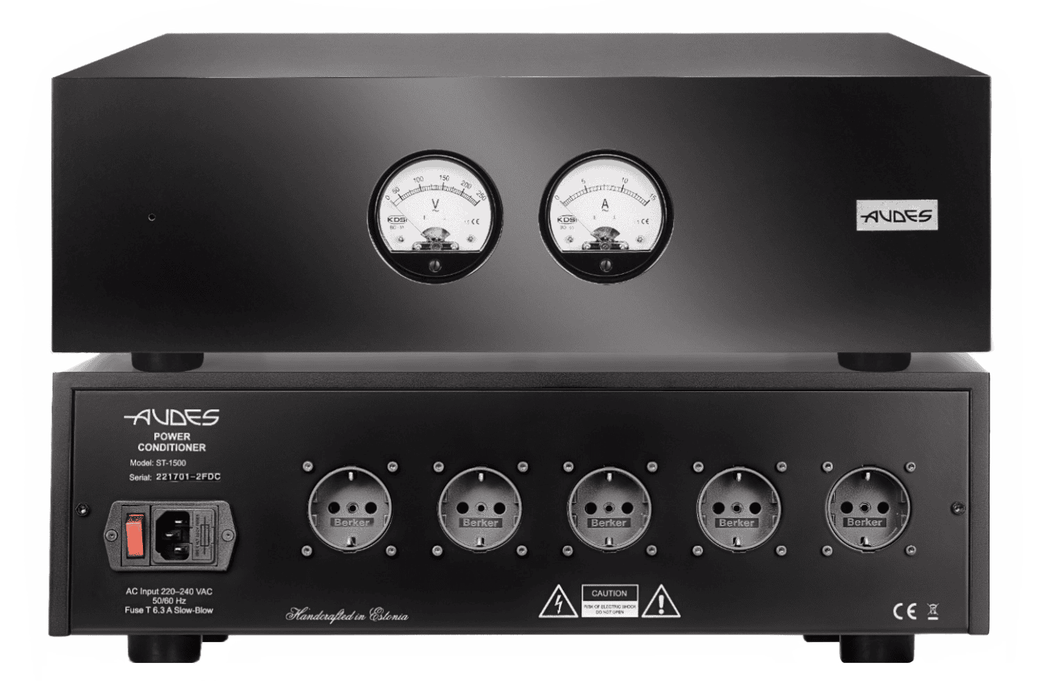 Is de 1.500 watt een beperking? Zeker niet voor standaard hifi-opstellingen en zelfs kleinere thuisbioscopen, dat is ruim voldoende. Tenzij je natuurlijk enorme buizen- of klasse A-systemen gebruikt met een stroomverbruik van enkele honderden watt. Dan moet je misschien voor de grotere Audes modellen gaan. Klasse AB en klasse D eindversterkers (ook met veel watt) zijn veel genadiger in termen van “echt stroomverbruik”. Waarom eindversterkers? Er wordt toch gezegd dat ze niet thuishoren in een lichtnetfilter omdat de dynamiek dan wordt afgeremd? Daar zit wel iets in. Maar niet bij Audes. Want de Estse powerconditioners houden ook van eindversterkers en kunnen er goed mee overweg. Want ze leveren heel snel veel vermogen. Dankzij de enorme transformator die in eigen huis wordt geproduceerd.