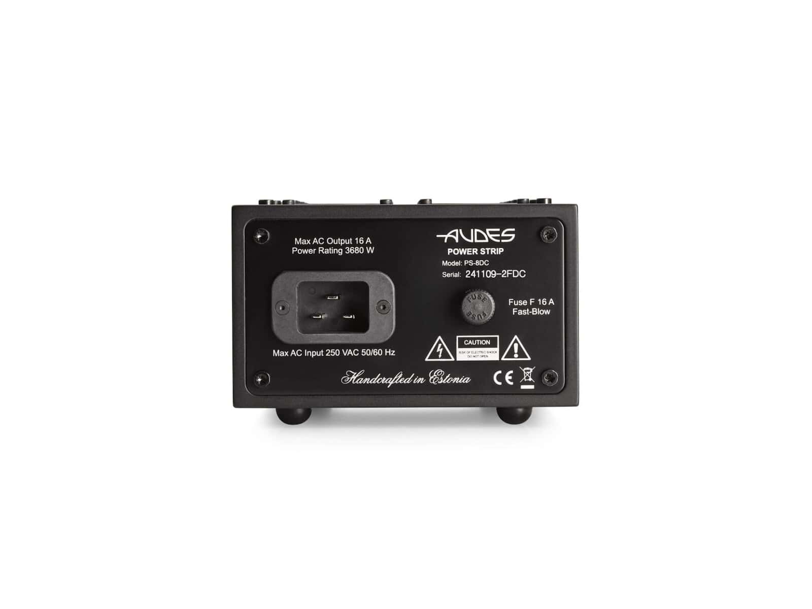 De Audes PS-8DC is een uiterst degelijk en zwaar gebouwde stroomverdeelunit -oneerbiedig;stekkerblokDe Audes PS-8DC heeft acht uitgangen. Het nominale vermogen is 3680 W en er wordt een zekering van 16 A gebruikt om het apparaat te beschermen. Als extra functie heeft PS-8DC een geïntegreerde DC-blokker. Deze beschermt de apparaten die op de contactdoos zijn aangesloten tegen de schadelijke effecten van de gelijkstroom die in het lichtnet aanwezig is.