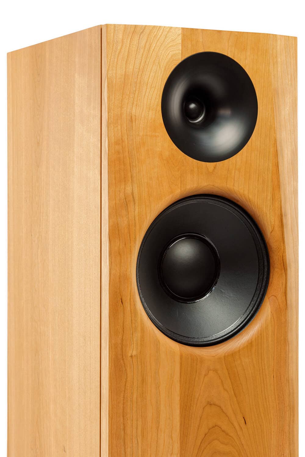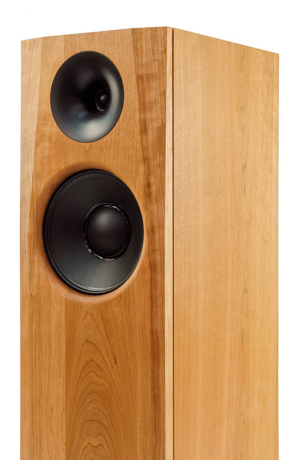 De ringradiator tweeter is gemonteerd op een prachtig massief houten frontpaneel naar keuze. Dit paneel is voor de hoofdkast gemonteerd met een resonantiereductie foam. De waveguide heeft verschillende grote voordelen: hij verbetert de efficiëntie, vermindert vervorming en corrigeert fasefouten tussen de waveguide en de midwoofer. Dit zorgt ervoor dat beide drivers in perfecte harmonie spelen en als één samenhangende eenheid klinken. Het frontpaneel bedekt ook de surround van de midwoofer, die ook een bron van vervorming kan zijn.