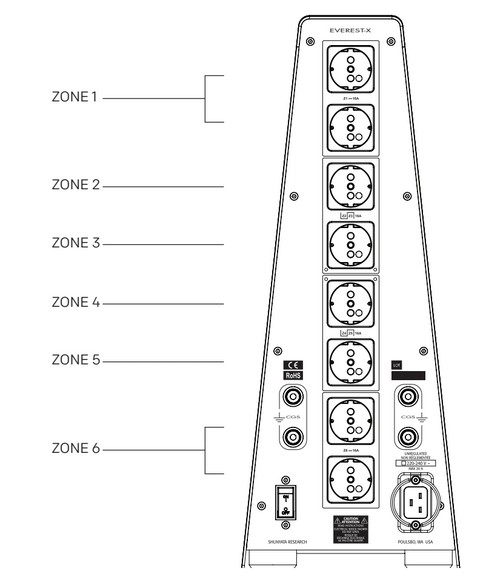 De EIGER maakt gebruik van hoogwaardige Hubbell-aansluitingen met een drievoudig veegcontactsysteem en brede contactoppervlakken om een stekker vanaf drie verschillende kanten vast te houden, wat zorgt voor een superieure elektrische integriteit. Hubbell-aansluitingen zijn voorzien van een stevige messing achterband die zorgt voor een betrouwbare aardverbinding die ruis en brom kan verminderen. Het Europese model EIGER is voorzien van stopcontacten met contacten van koperlegering die zijn ontworpen voor geleiders met een grote diameter.